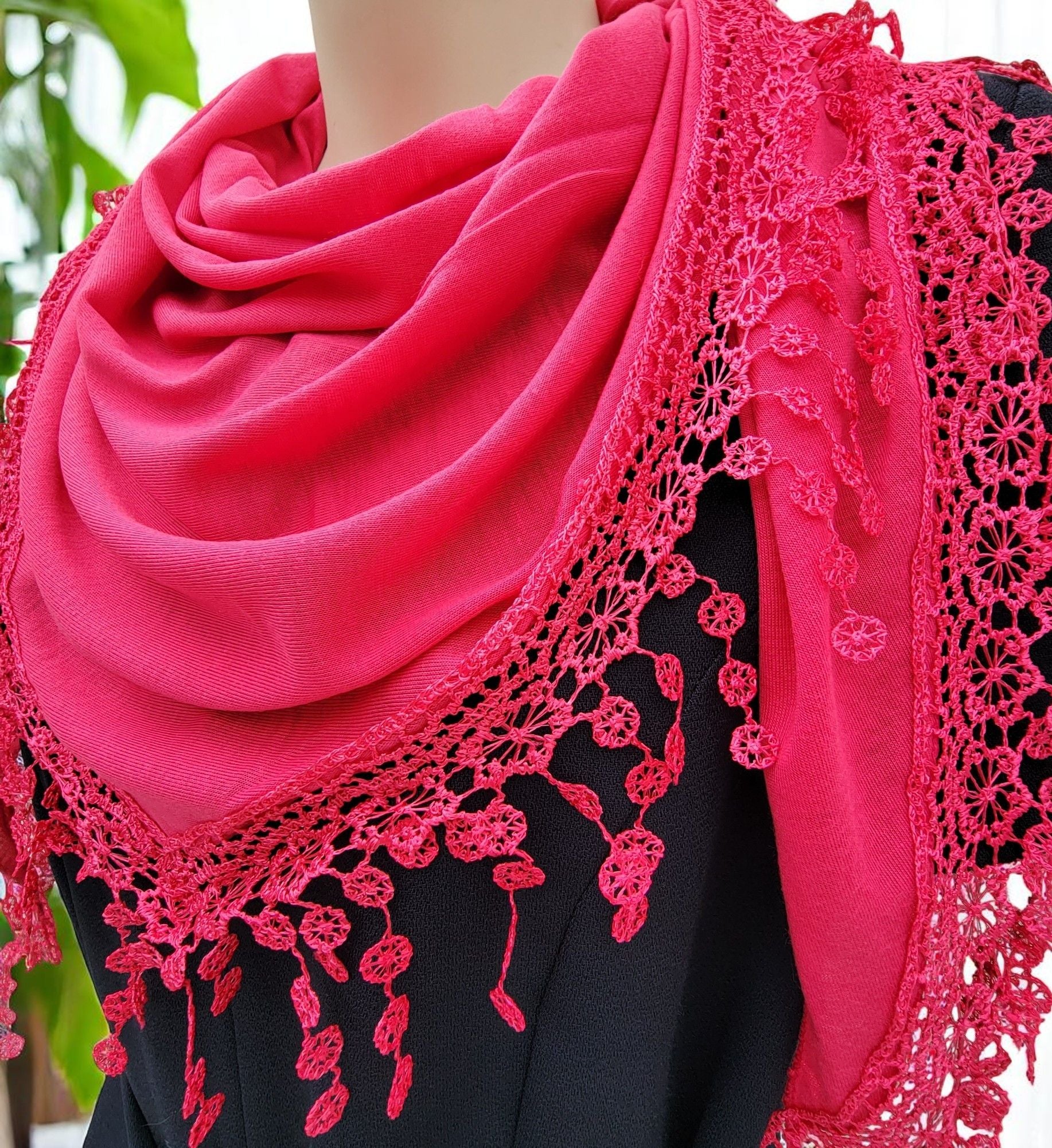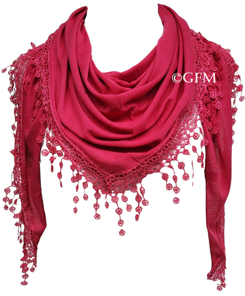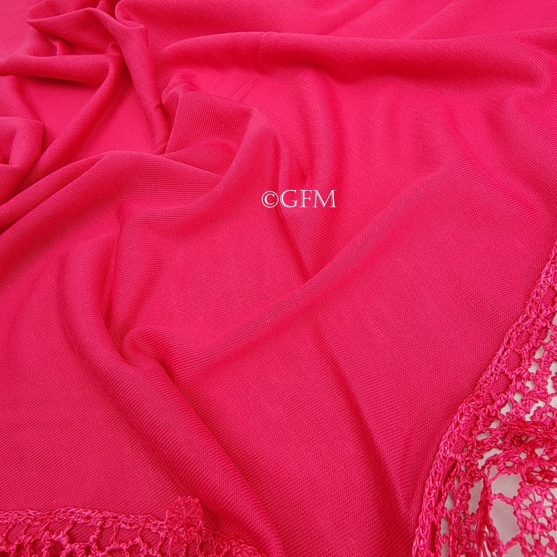 Triangle Scarf with Lace and Tassels - Fuchsia (TRI-PLN-CRTGLB)