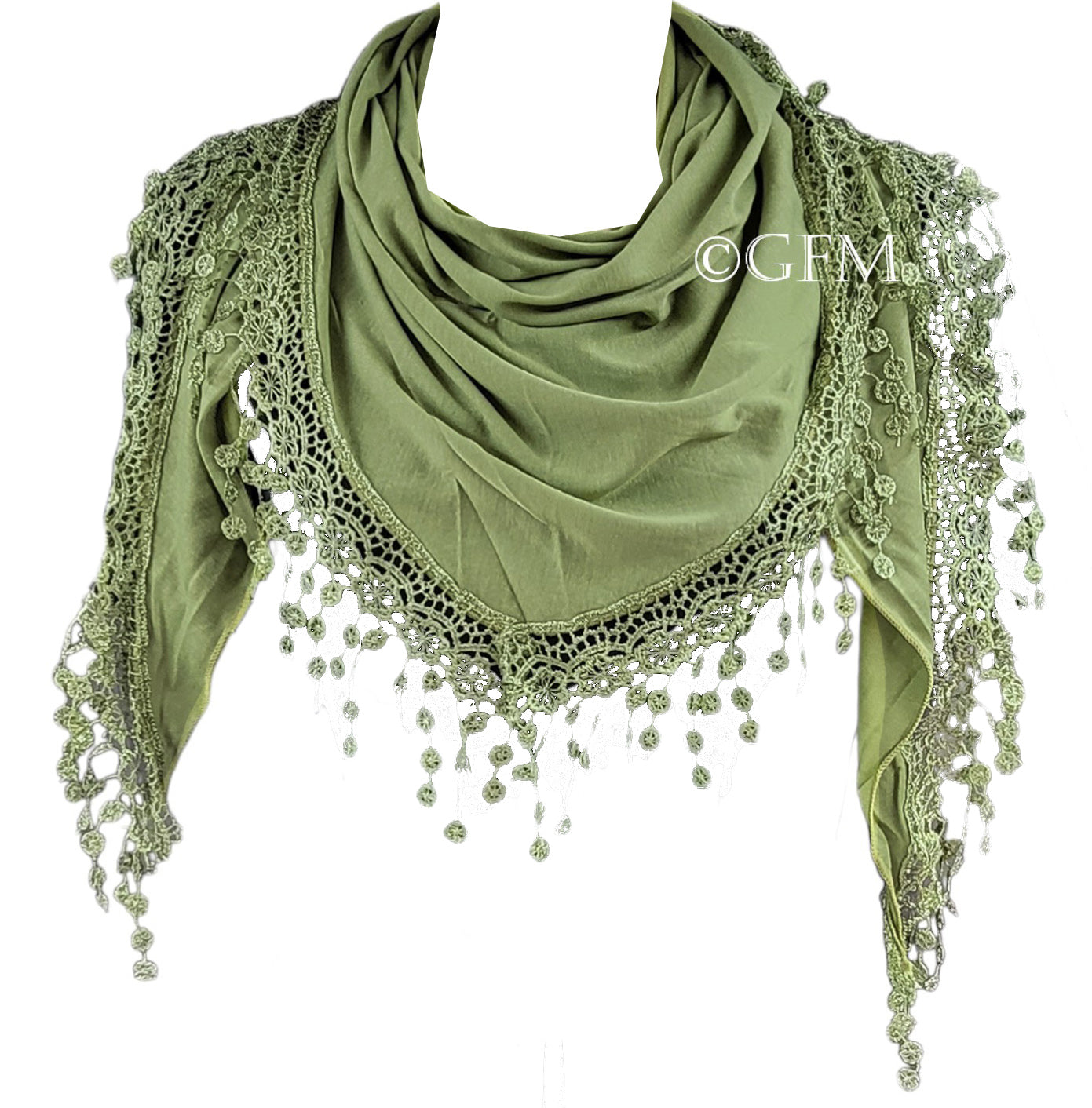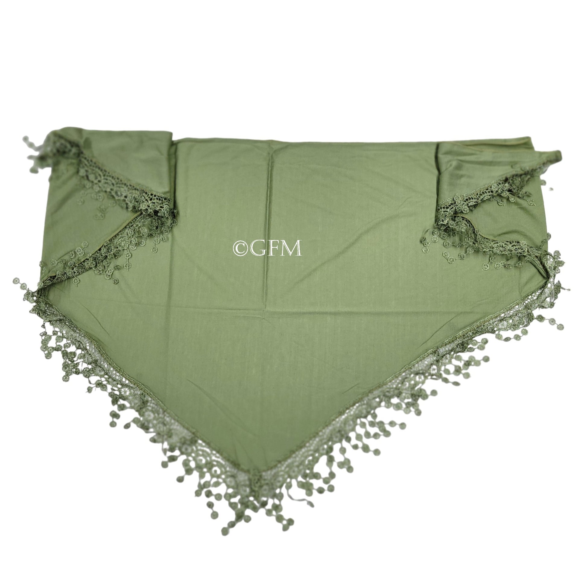 Triangle Scarf with Lace and Tassels - Light Green (TRI-PLN-HLHR)