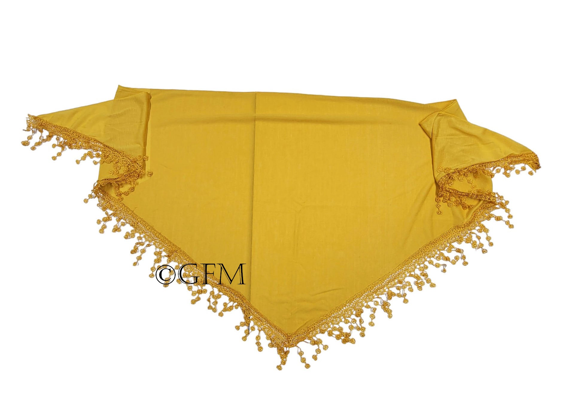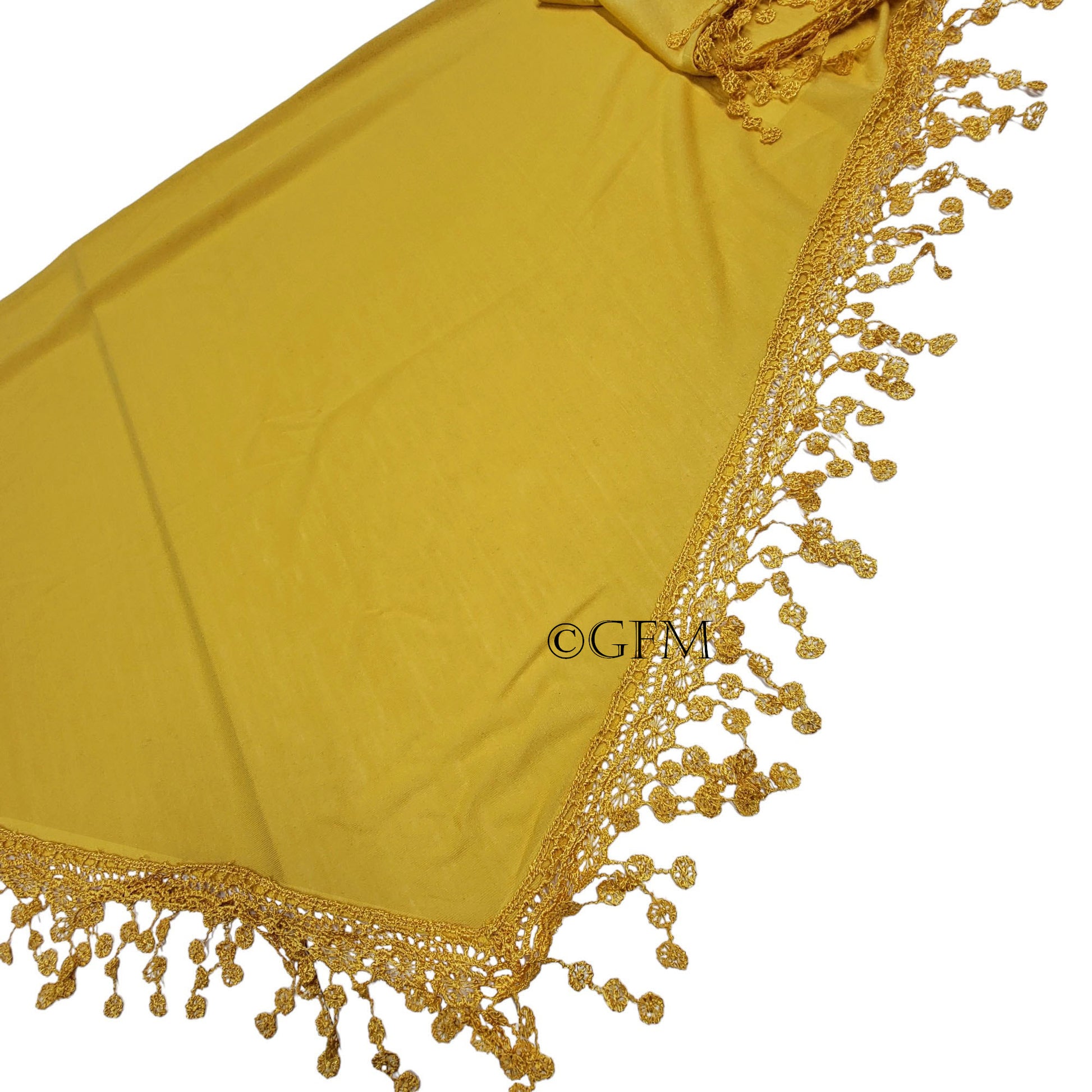Triangle Scarf with Lace and Tassels - Mustard Yellow (TRI-PLN-MTD-PLA)
