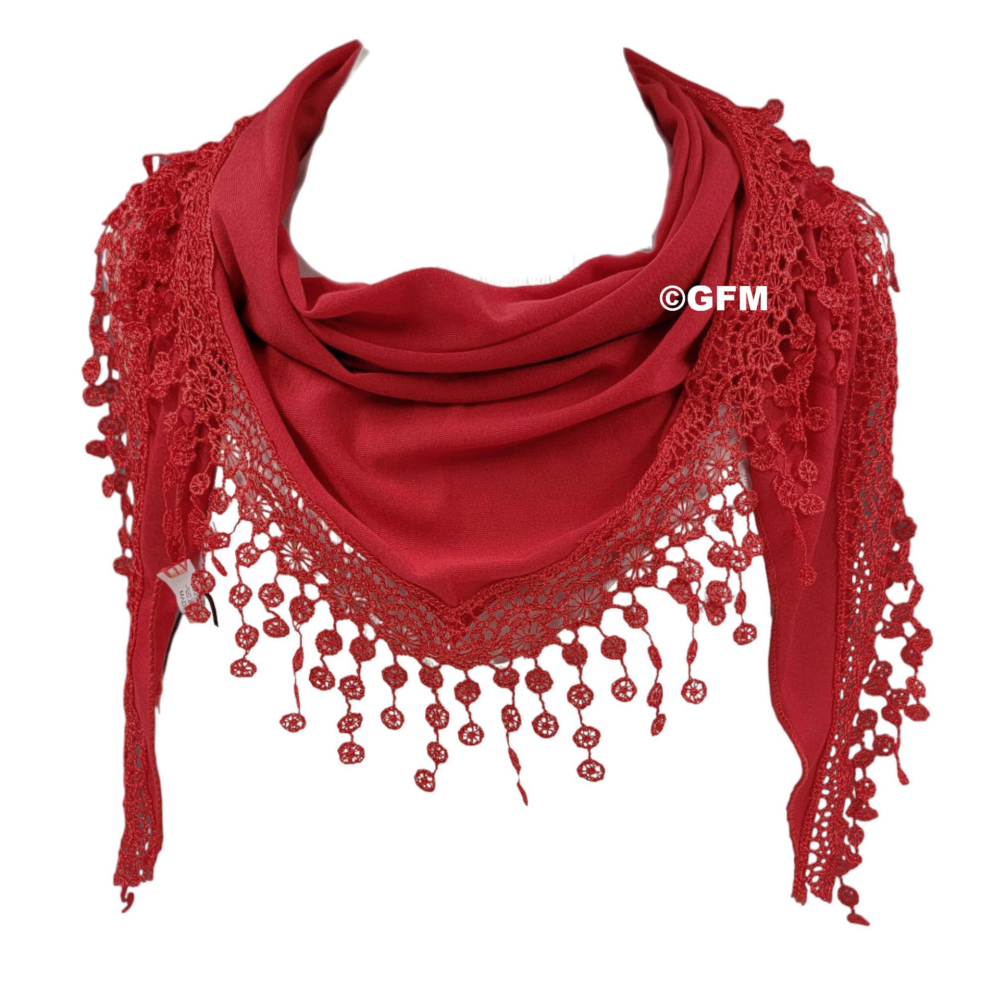 Triangle Scarf with Lace and Tassels - Red (TRI-PLN-SCLL)
