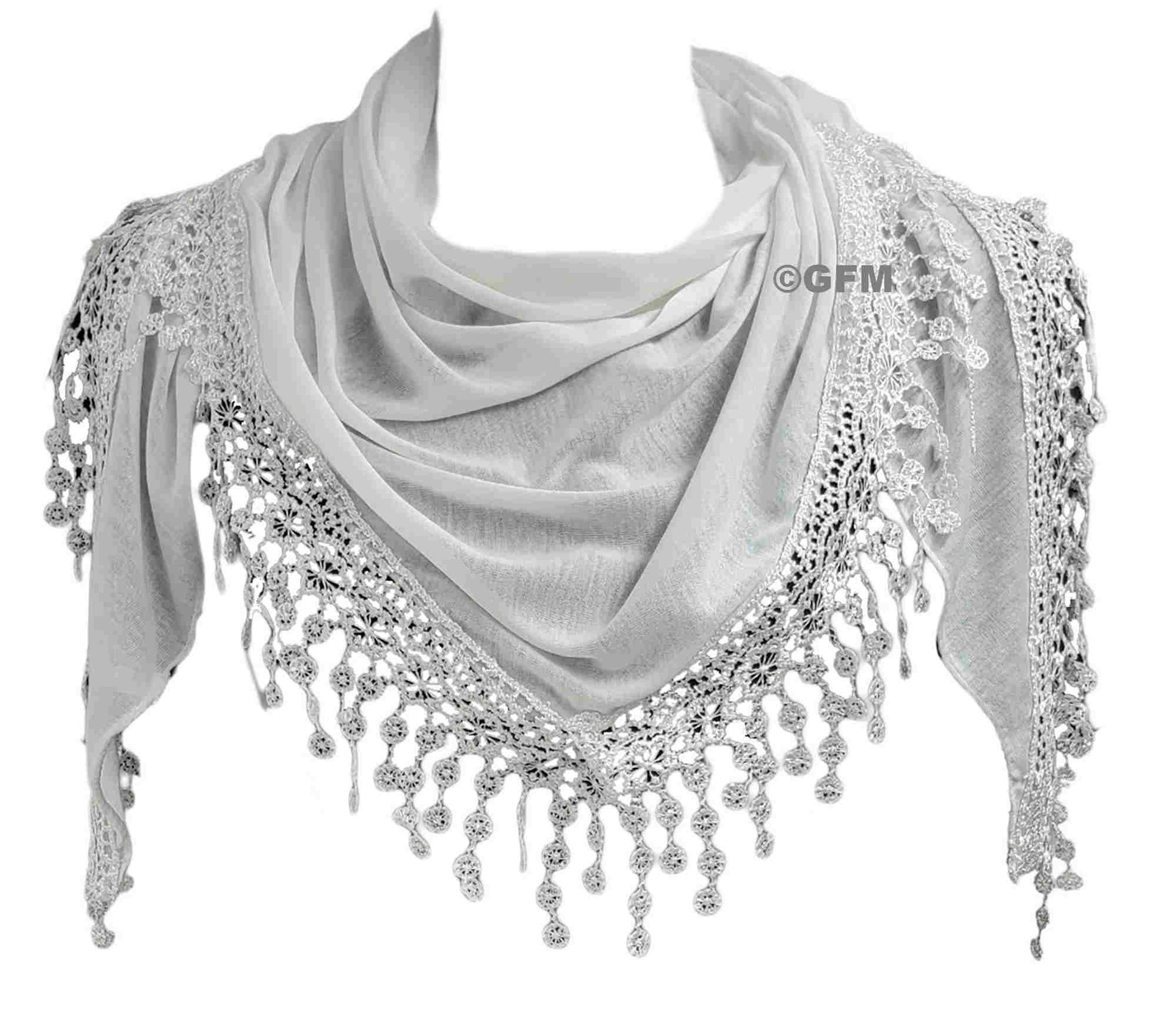 Triangle Scarf with Lace and Tassels - White (TRI-PLN-SFD)